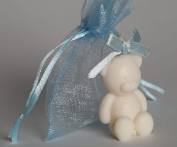 Świeca „Misio” to dekoracyjny i praktyczny produkt, który wyróżnia się charakterystycznym kształtem misia oraz możliwością pełnej personalizacji etykiety. Wykonana z wysokiej jakości wosku, zachowuje estetyczną formę i szczegółowy kształt, a po zapaleniu roztacza przyjemny, subtelny aromat.