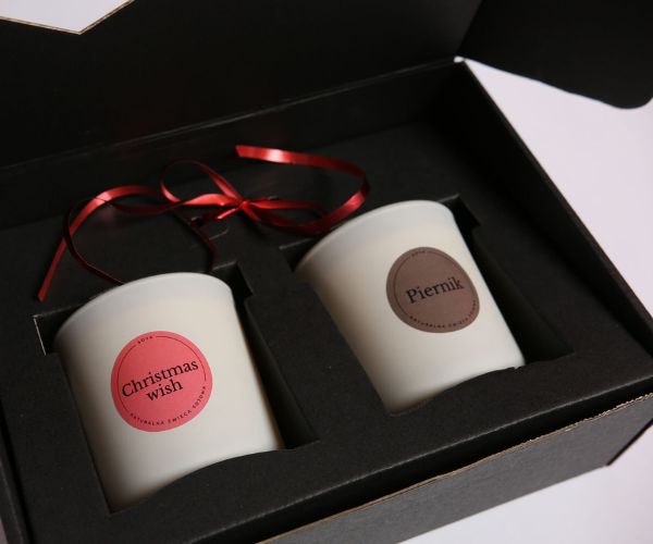 Zestaw świąteczny dwie świece sojowe 250 ml w pudełku