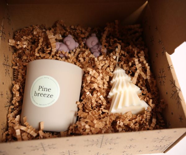 Zestaw prezentowy – kominek, wosk i świeca zapachowa choinka